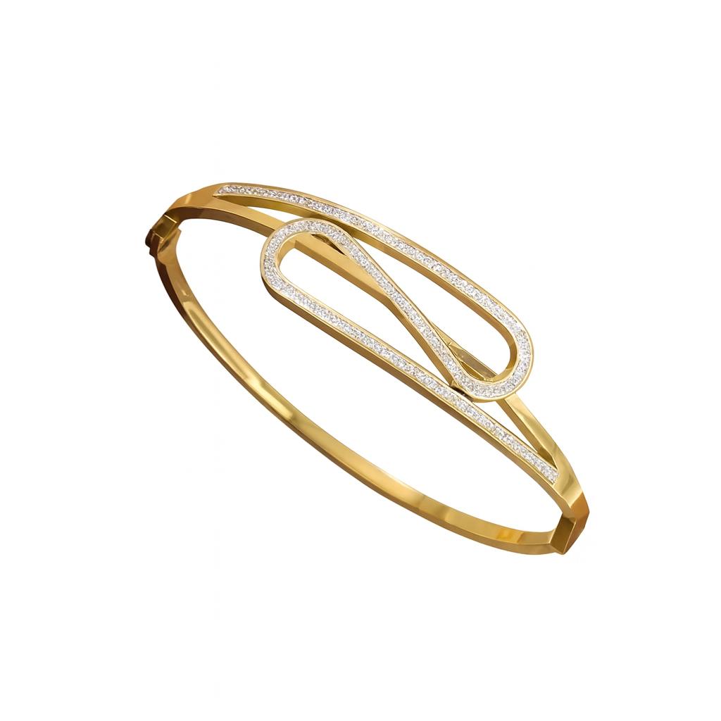 This 18K gold-plated stainless steel bangle bracelet is waterproof, non-tarnish, and designed for women, making it perfect for anniversaries and daily wear. Featuring a classic yet trendy style, it combines high-grade quality with environmental-friendly materials.